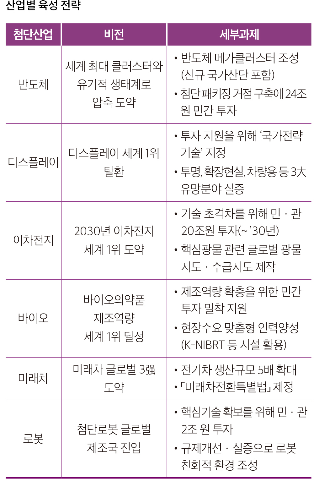 셋째, 반도체, 배터리 등 핵심 성장 동력 분야는 특정 산업이나 기술의 발전을 통한 경쟁우위 확보 차원을 넘어 경제의 지속성장 가능성을 담보하고, 국가 및 민·관·학·연이 공동으로 대응해야 한다.
