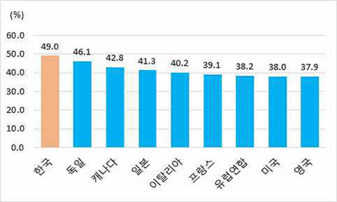 주 : ’22년 기준(2020년 한국, 2021년 일본).