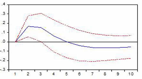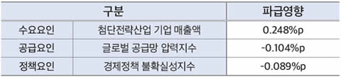 주 : 평균적으로 3분기 후 파급영향 계수임.