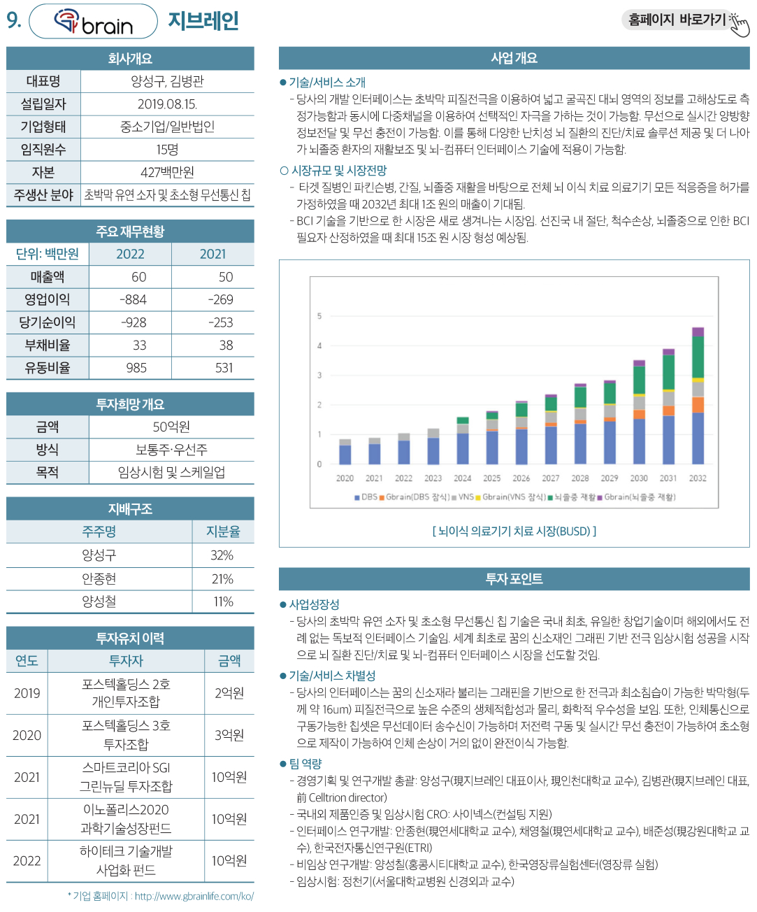 ▲ 기업 홈페이지 : http://www.gbrainlife.com/ko/