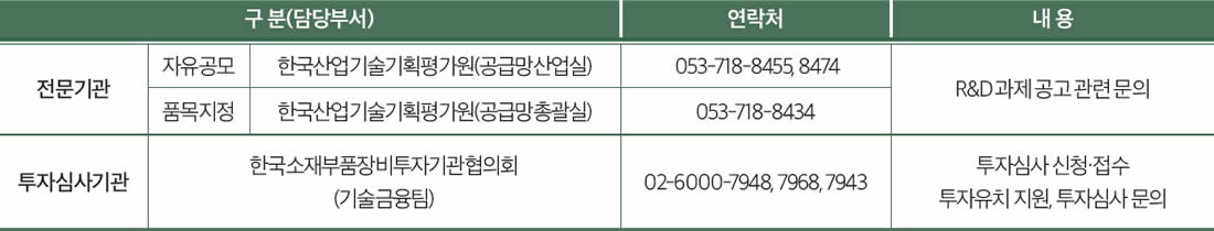 소재·부품의 해외의존도 완화, 기술고도화 및 미래시장 선점을 위해 소재·부품 기술확보와 경쟁력 강화를 지원