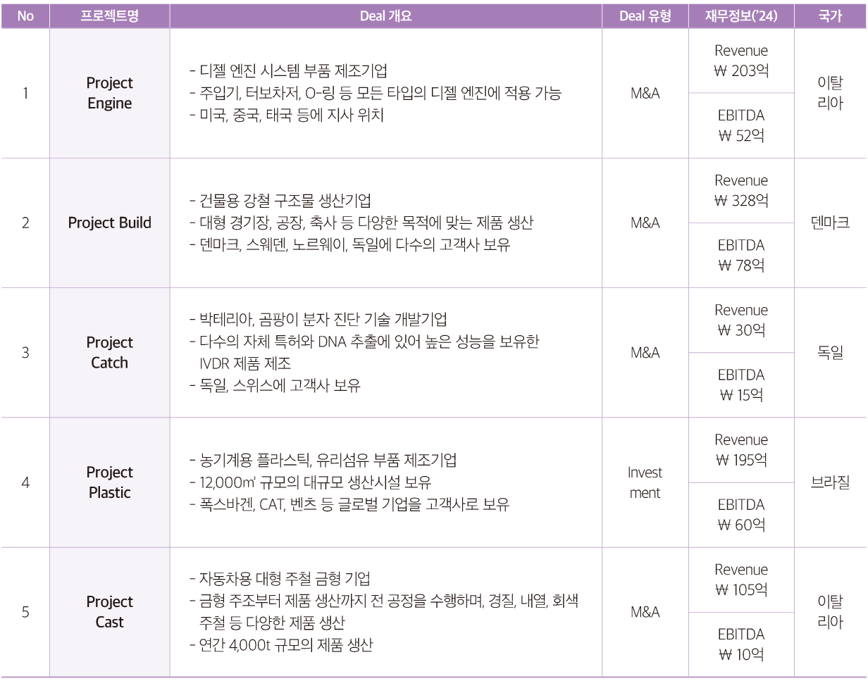 매각 의사가 확인된 해외 M&A 매물정보입니다. 해당 기업과 M&A 추진 및 추가 정보를 희망하시는 경우 아래로 연락해주시기 바랍니다.