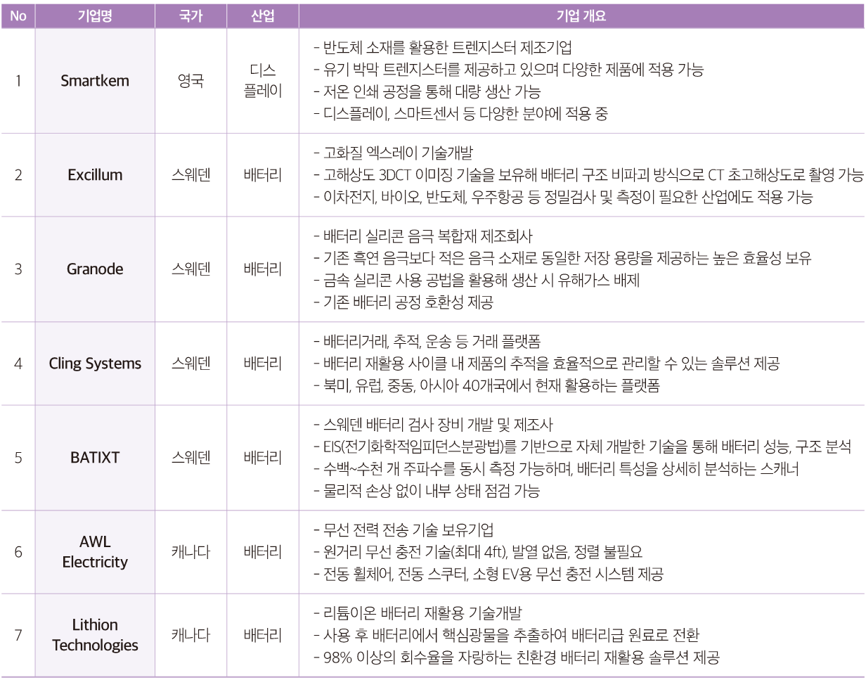 국내기업과 협력을 희망하는 주요 산업 내 해외 유망기업 정보입니다. 해당 기업과 협력을 논의하실 수 있도록 매칭을 지원하오니 관심 있으신 경우 아래로 연락해주시기 바랍니다.