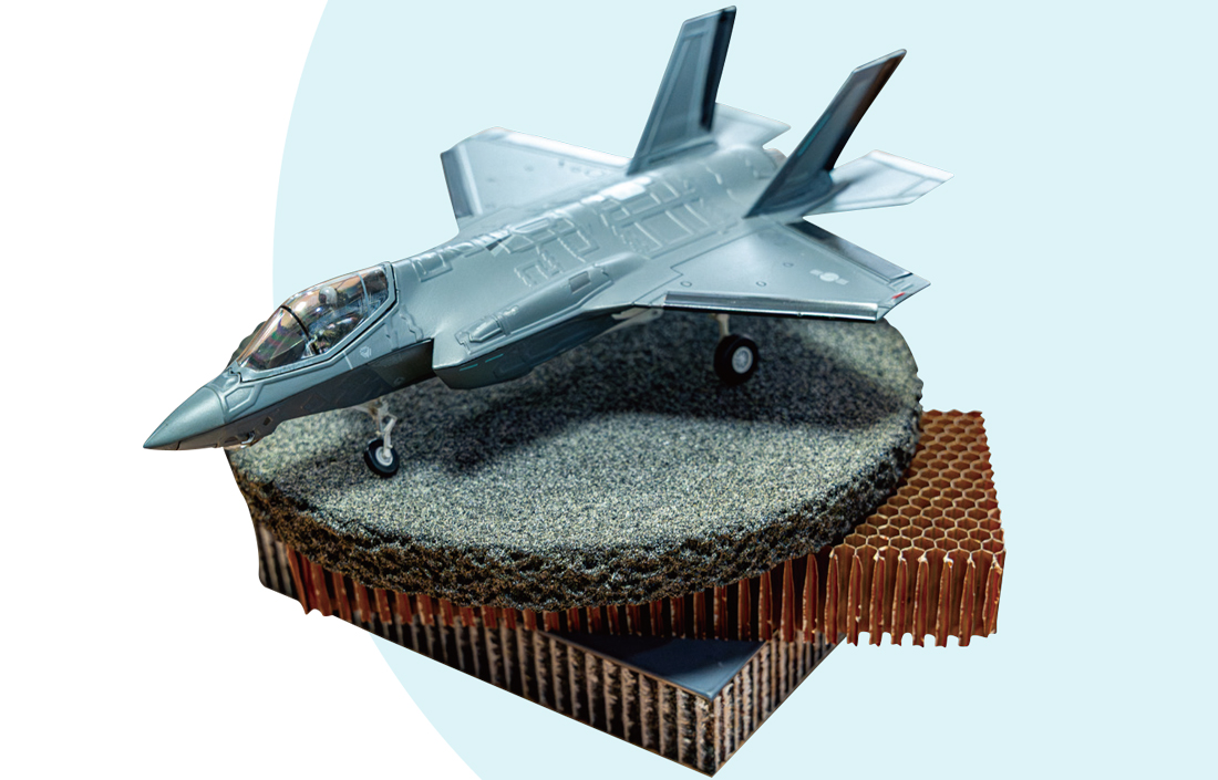 방위산업에서는 차세대 전투기와 무인기용 흡수체·차폐 소재가 개발·검증 단계에 있고, 전투기 스텔스 소재는 실제 납품으로 이어졌다.