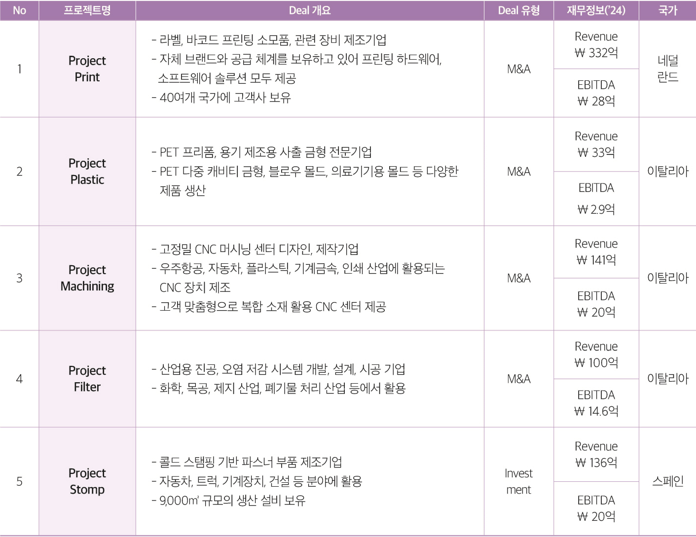 ※ PE 투자유치 해외유망기업 정보는 매각 의사가 확인된 M&A 매물정보는 아니오니 참고하시길 바랍니다.