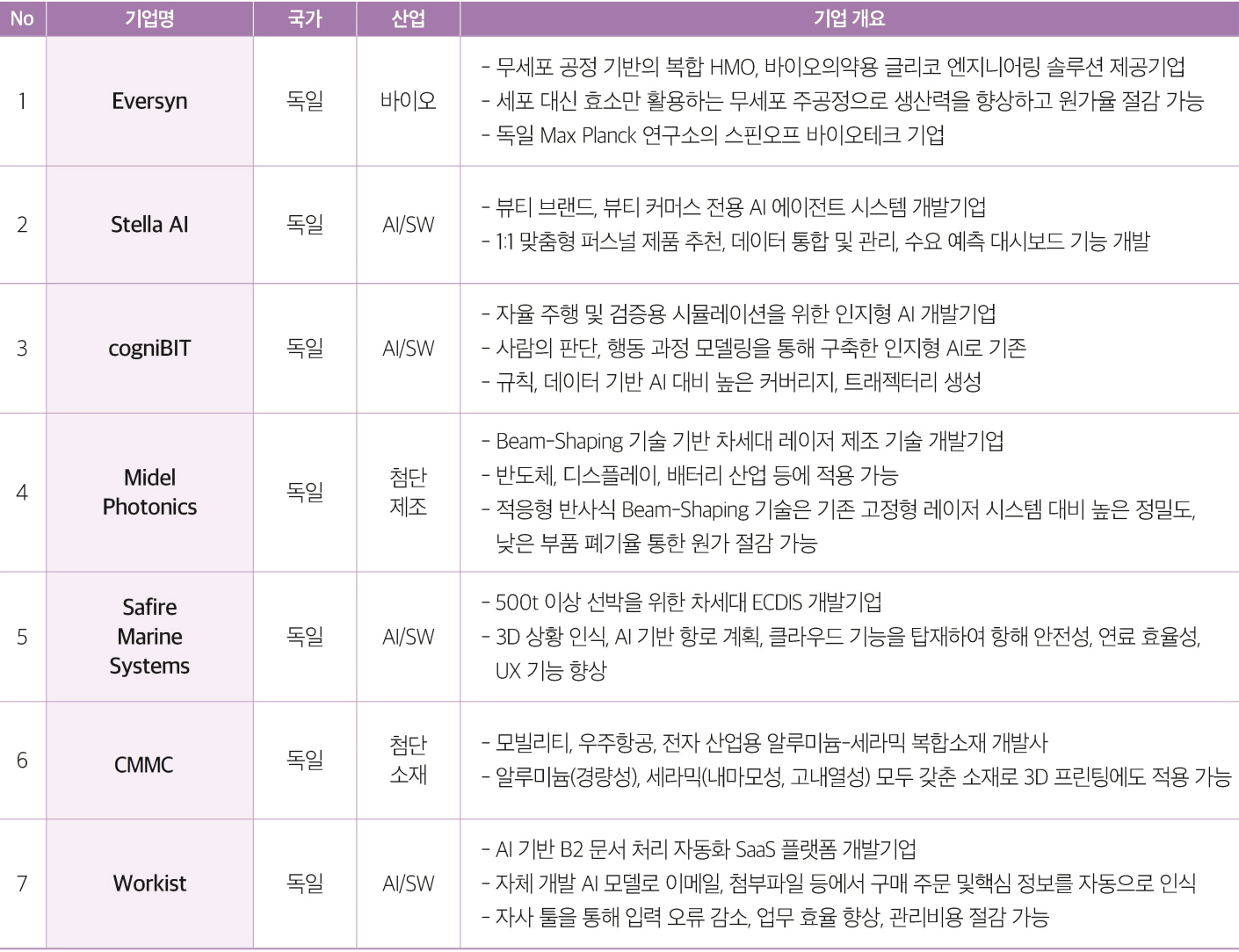 국내기업과 협력을 희망하는 주요 산업 내 해외 유망기업 정보입니다. 해당 기업과 협력을 논의하실 수 있도록 매칭을 지원하오니 관심 있으신 경우 아래로 연락해주시기 바랍니다.