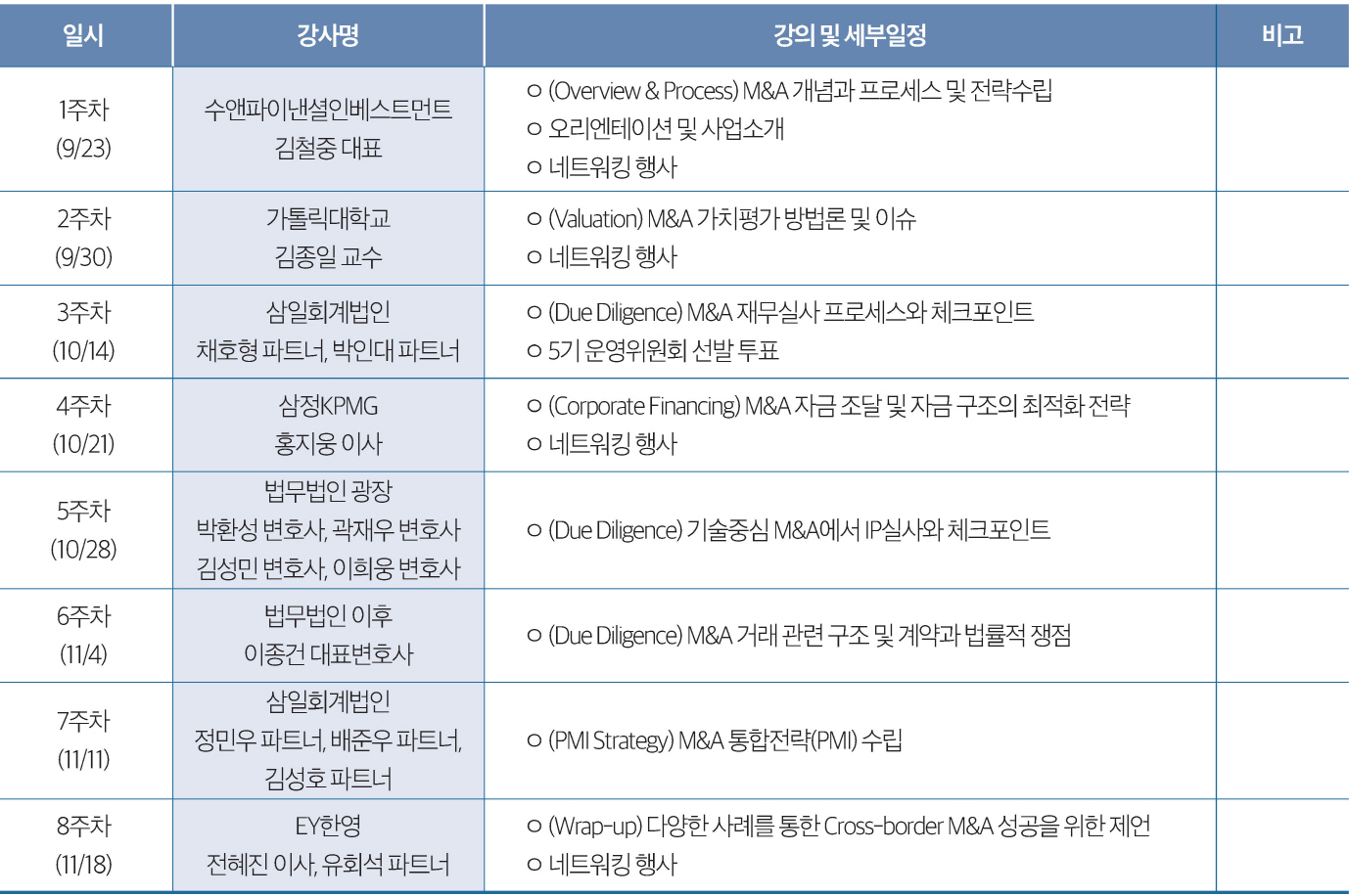 사내 전략기획, 신사업, 재무, 법무, R&D 등 M&A 관련 임원 및 실무진 등 |