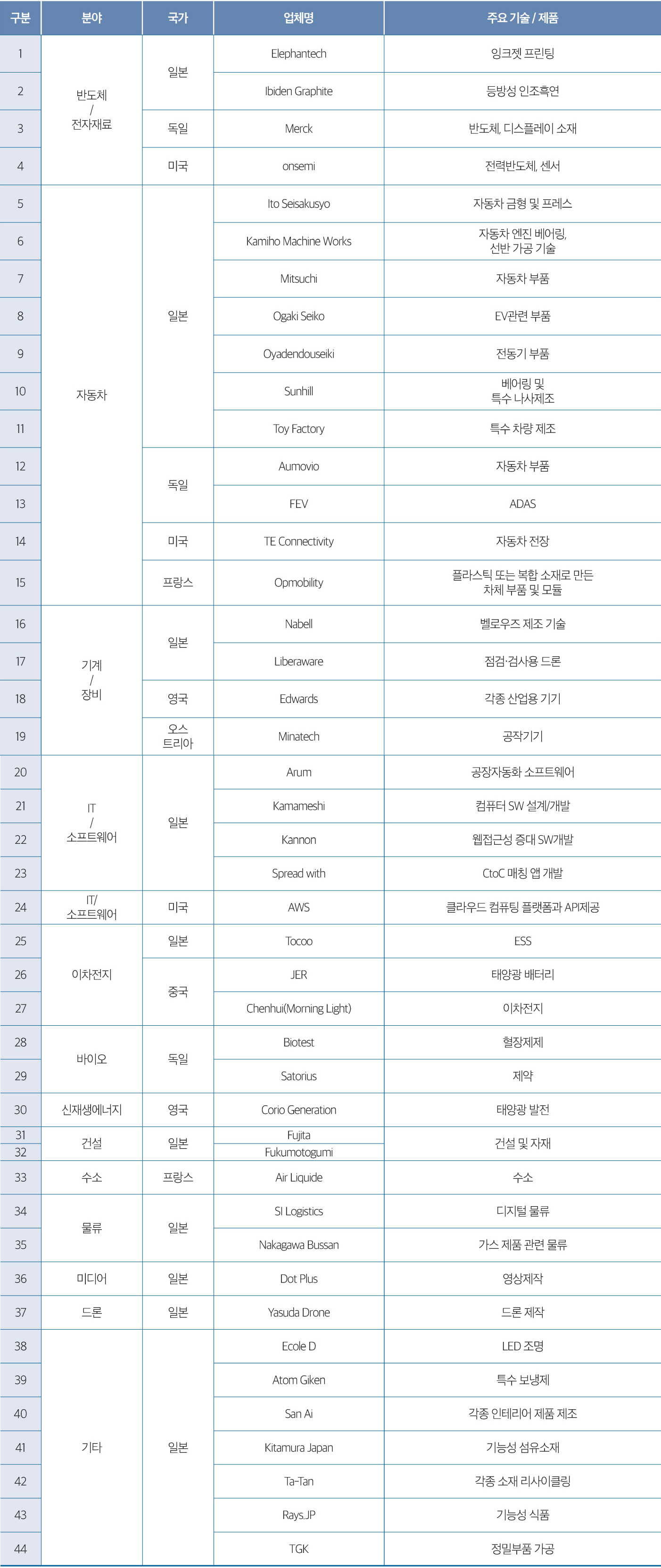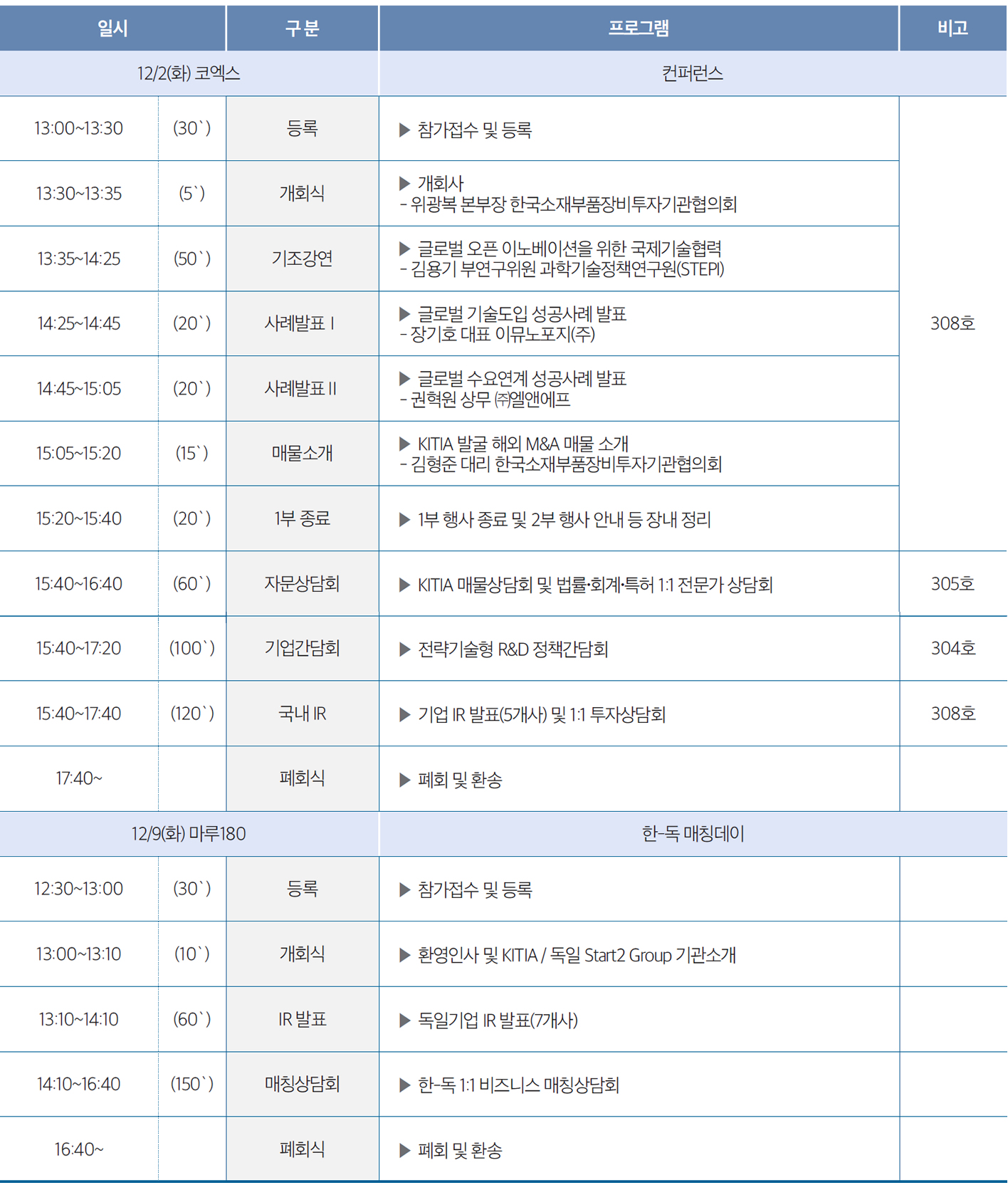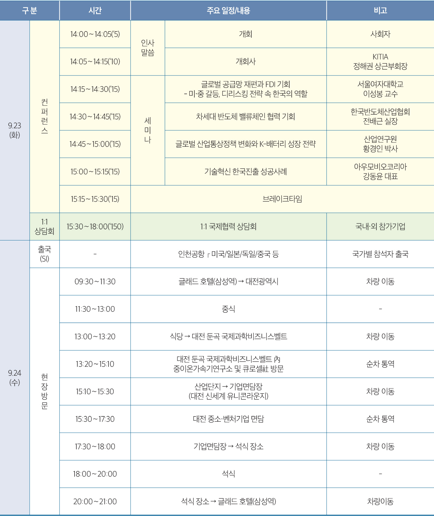 - (컨퍼런스) Day 1: KITIA, 美·日·獨·中 등 해외 첨단 소부장 기업 및 해외 재무투자자 등 54개社, 국내 소부장 기업 등 |