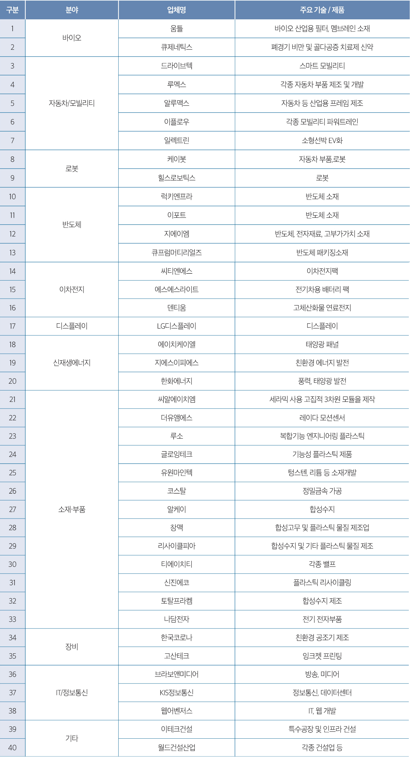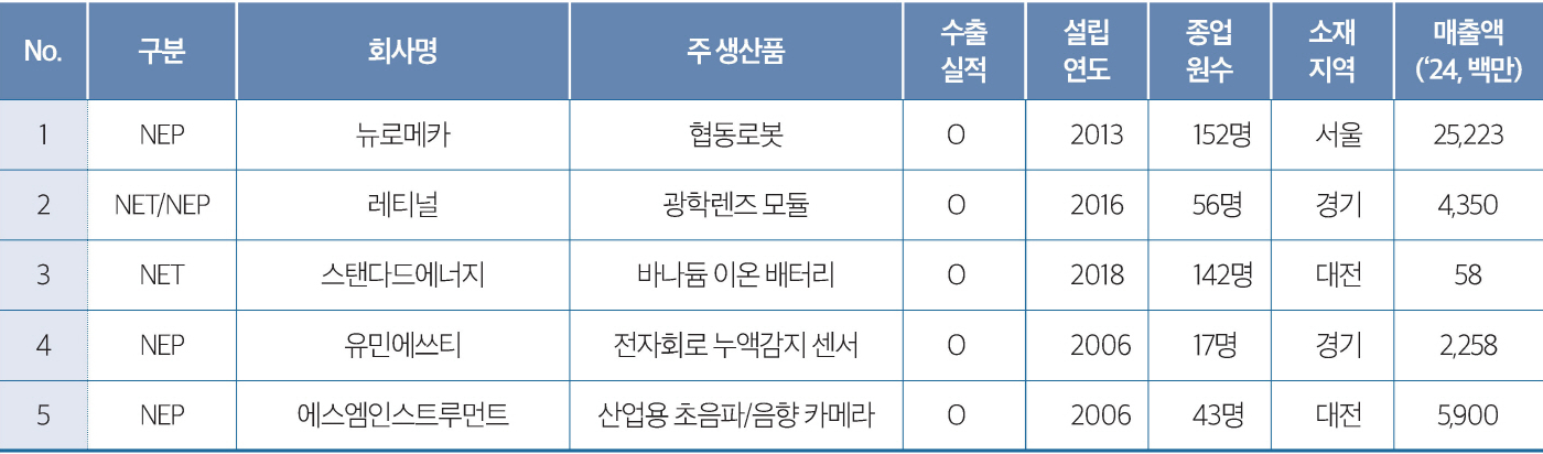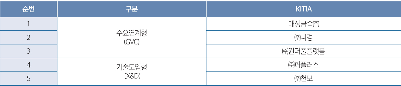 전략기술형(기술도입/수요연계) R&D 수행기업 5개사 |
