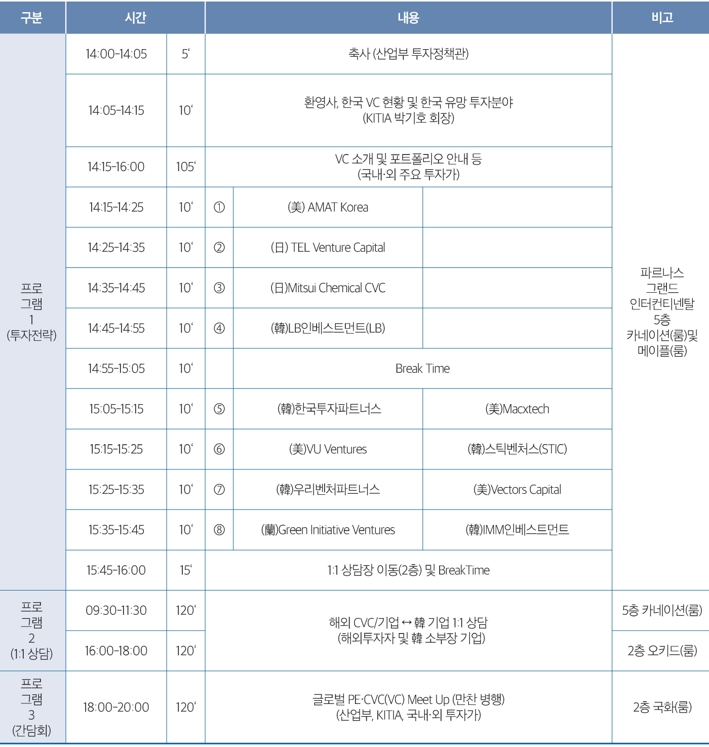 CVC 얼라이언스 회원사, K-CVC Club, 투자유치 희망기업 등 100명 내외 |