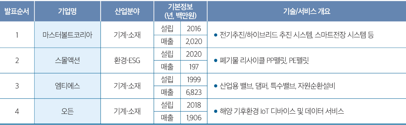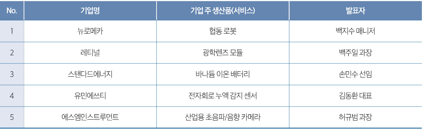 - 후속 투자상담 희망기업 5개사 및 총 11건 발굴