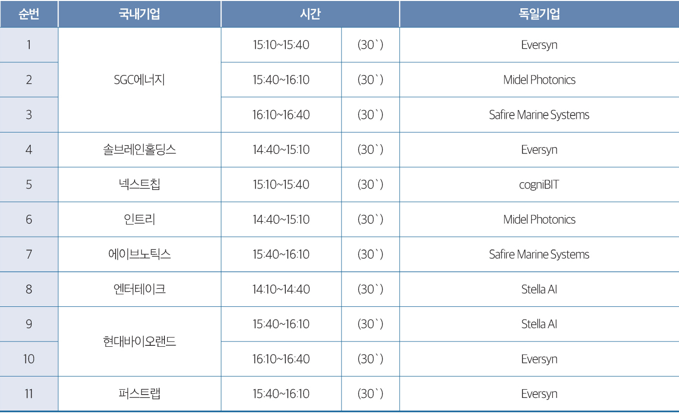 - (독일IR) 독일 유망기업 IR 발표 및 국내기업과 기술협력 매칭상담회