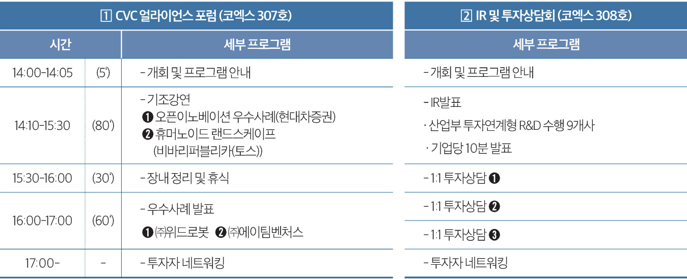 Two-Track 구성을 통해 CVC 포럼, IR 및 투자상담회 운영 |