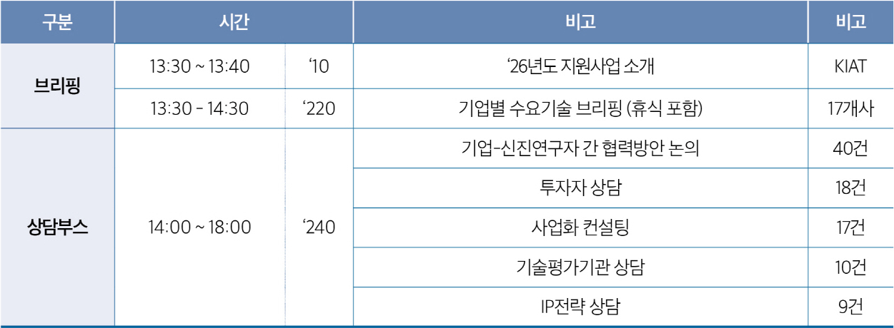 • 주요 일정 | 기업 수요기술 브리핑 17건, 1:1 상담 94건 |