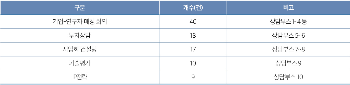 • 상담부스 운영 | 기업-연구자 협력 논의 등 상담회의 운영 94건 |