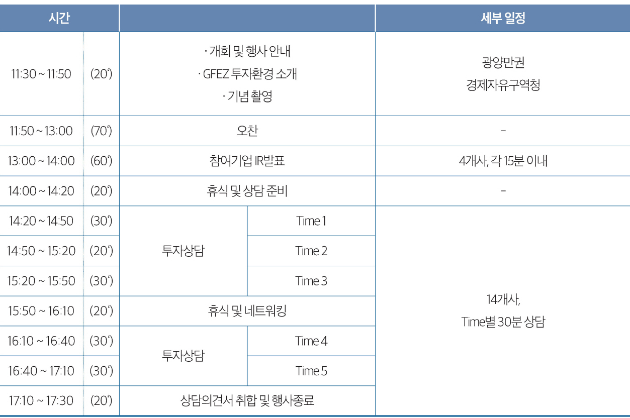 • 주요내용 | ➊ 민간투자유치 절차 안내, ➋ 1:1 투자상담 |