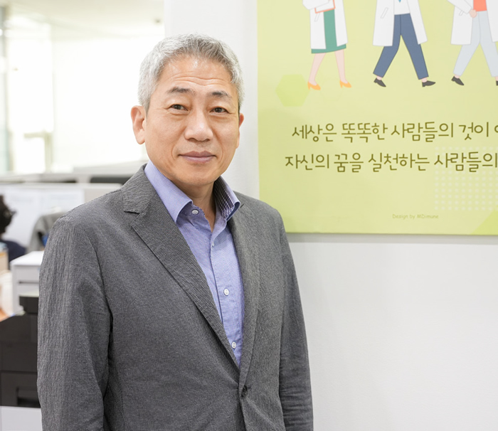 지금 이 순간에도 ‘암’은 누군가의 생에 끝을 드리우고 있고, 누군가의 가족을 뒤흔들고 있다. 암을 정복하기 위한 범지구적인 연구에도 불구하고 암은 여전히 난치질환이며, 병원에서 사용 가능한 항암제의 종류도 여전히 제한적이다. 고도화된 사회는 인류의 수명을 늘려주는 동시에 난치질환을 정복해야만 하는 난제를 안겨주었다. 인간과 암 사이의 전쟁은 오래되었고 끝나지 않았고 점점 더 치열해지고 있다. 엠디뮨 대표 배신규 대표도 그러한 전쟁 속에 과감히 뛰어들어 항암제를 개발, BioDrone™ 플랫폼 기술을 활용하여 희망의 빛을 밝히고 있다.