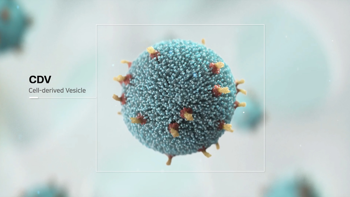 CDV는 세포외소포(4)의 일종으로, 엑소좀과 유사한 나노 입자다. CDV는 인체 세포를 직접 압출하여 대량으로 생산할 수 있으며, 이를 기반으로 차세대 약물시스템 바이오드론 플랫폼을 개발하고 있다. 엠디뮨은 CDV 기반의 엠디뮨의 압출 생산 기술은 주요 5개국(미국, 유럽, 중국, 일본, 한국)에 특허 등록되어 있으며, 바이오드론은 기존의 약물 전달 시스템을 대체할 수 있는 가능성을 가지고 있다.