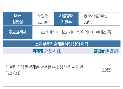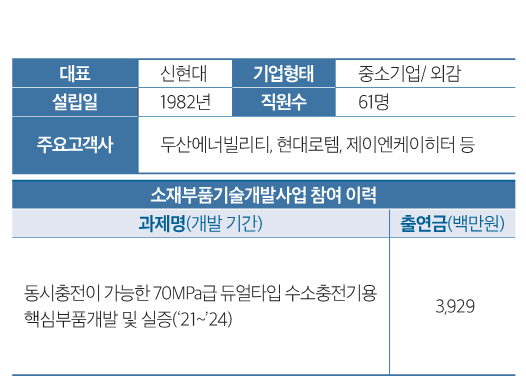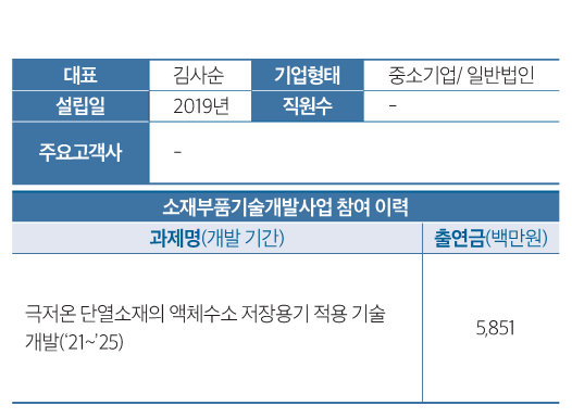 이어서 산업통상자원부 사업, 소재부품기술개발(R&D)에 참여한 기업 중 “수소” 분야의 기술 우수 기업을 살펴보고자 합니다. 해당 기업과 컨택을 희망하시는 분은 아래로 연락 주시기 바랍니다.