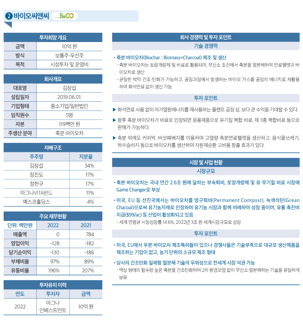 2 바이오씨앤씨 축분 바이오차 10억 원 보통주·우선주